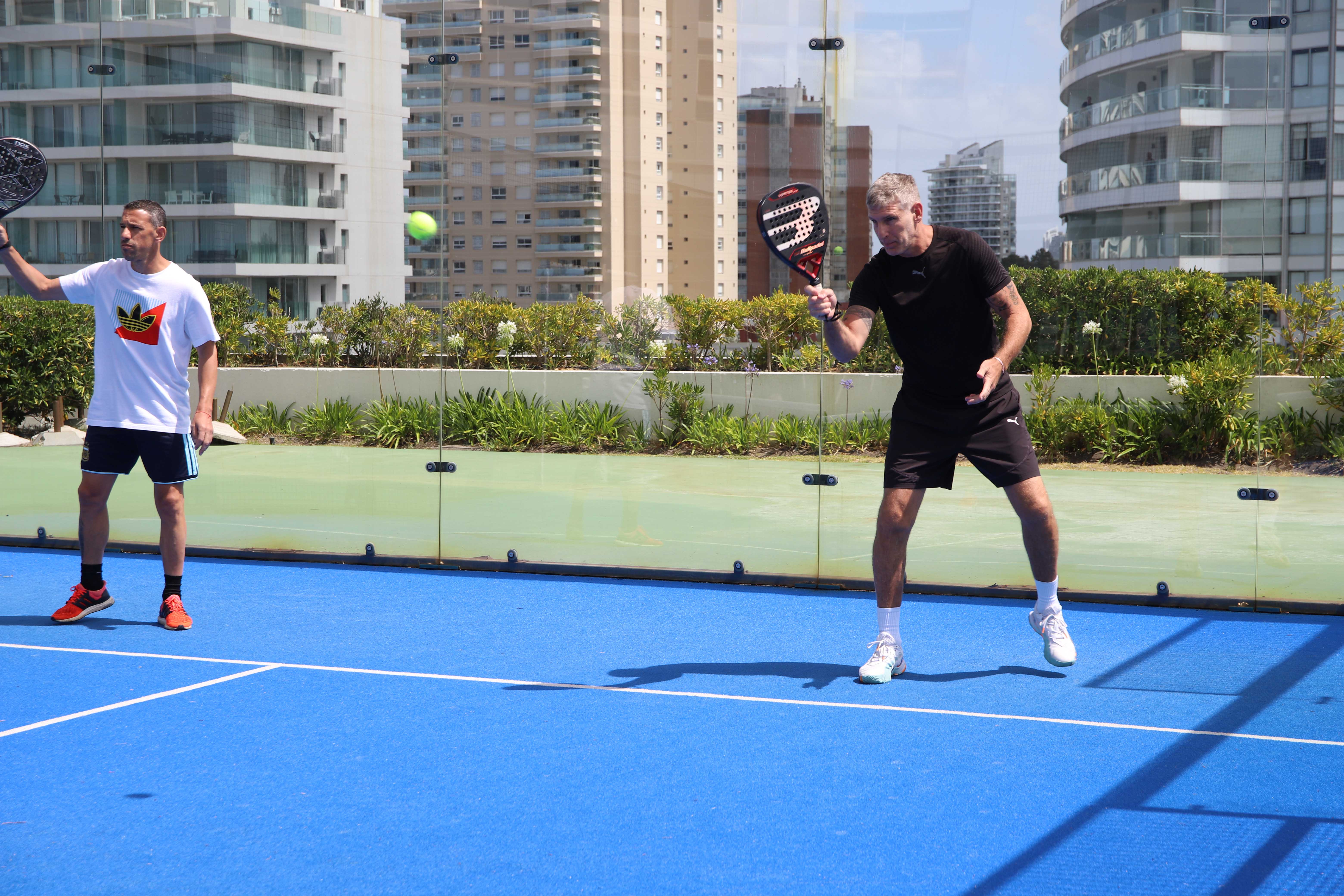 Martín Palermo y el Flaco Schiavi jugaron la final de un torneo exhibición de pádel en Punta del Este